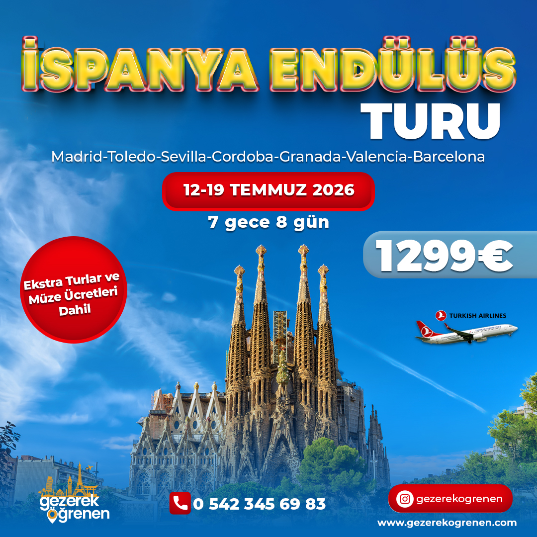 | İspanya & Endülüs Turu | 1299 Euro | 400 Euro | 1249 Euro | 300 Euro |